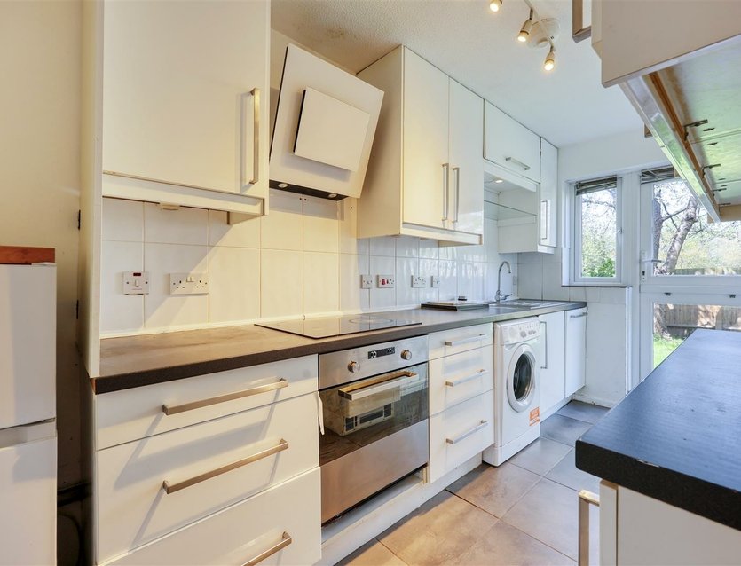 The accommodation is arranged around a central hallway, providing access to all rooms. To the front, a good sized living room and offers ample space for both seating and dining. The separate kitchen is positioned to the rear and is fitted with a range of base and wall units, with space for freestanding appliances.