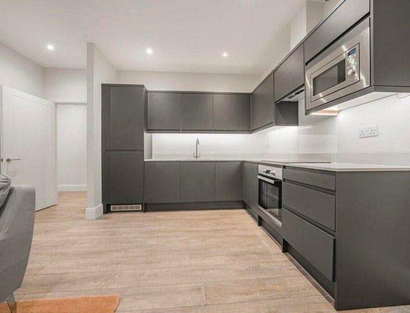The accommodation on offer comprises an inviting entrance hall with laminate flooring and a built-in storage cupboard. The impressive open-plan living space features laminate flooring and a contemporary matt grey handleless kitchen fitted with Stone Italiana quartz work surfaces and matching upstands.