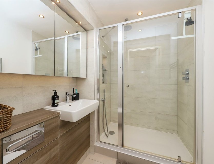 The primary bedroom features built-in wardrobes and an en-suite shower room, while bedroom two is a well-proportioned double room. A modern family bathroom completes the living space.