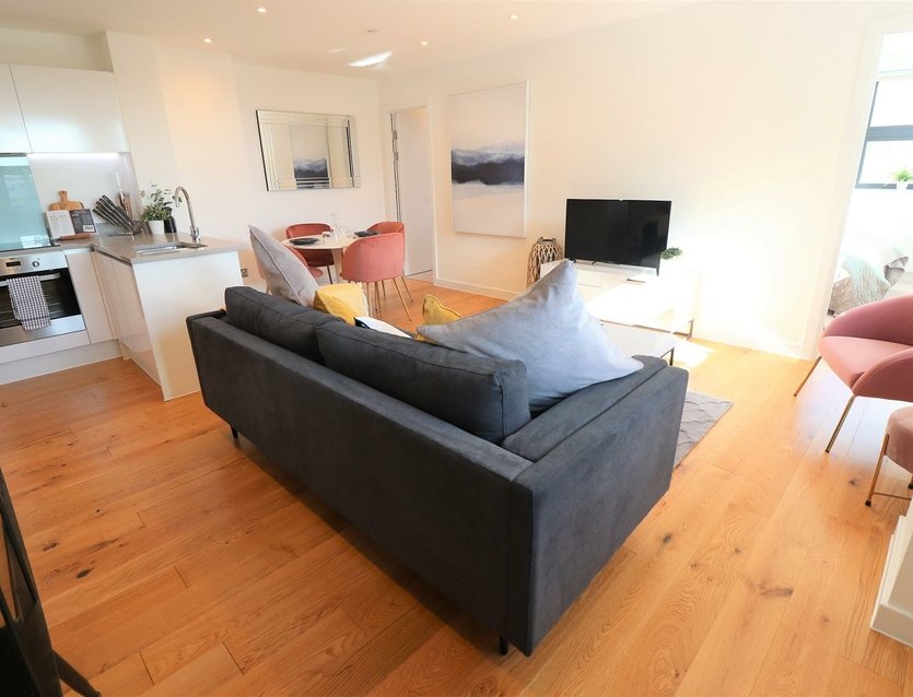 Providing accommodation that briefly comprises of, entrance hall with a built in storage cupboard, there is a superb open plan living space, the kitchen is fitted with a range of storage units and drawers with stone work surfaces with an inset induction hob, integrated electric oven, dishwasher and fridge freezer, the two bedrooms are a generous size and the bathroom has an enclosed bath with shower over, wash basin, WC, tiled walls and heated towel rail.