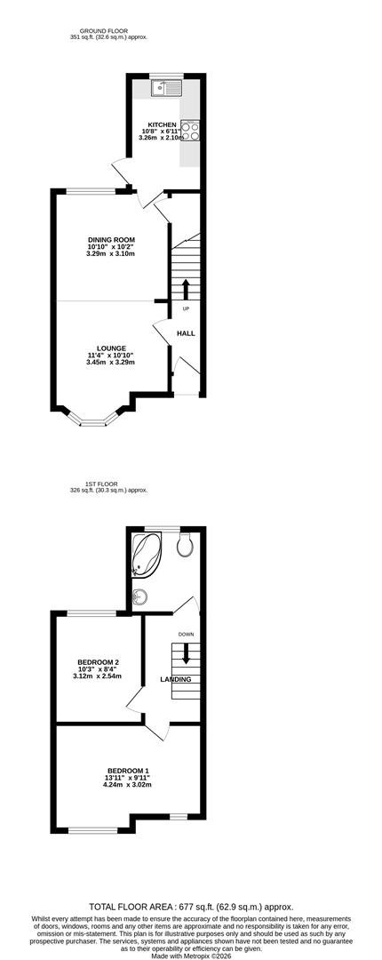 The property opens into a welcoming hallway with stairs rising to the first floor. To the front, a bright and comfortable lounge (11'4" x 10'10") features a charming bay window that fills the space with natural light. Beyond, a separate dining room (10'10" x 10'2") provides the perfect setting for entertaining or family meals. To the rear, the fitted kitchen (10'8" x 6'11") offers a practical layout with ample worktop and storage space, and convenient access from the dining area. It also benefits from a recently upgraded combination boiler.