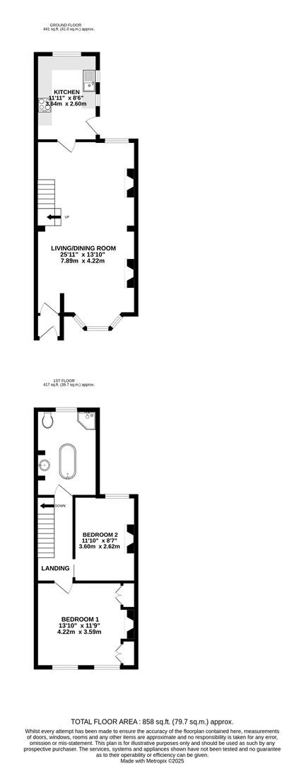 Upstairs, the first floor hosts a generously sized bathroom complete with both a separate bath and shower. There are also two well-proportioned double bedrooms, along with access to the loft from the landing.