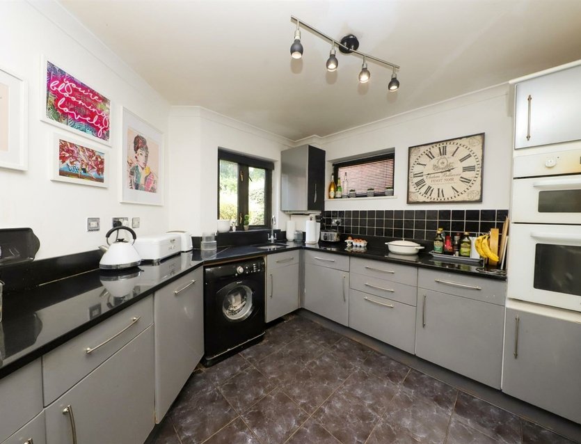 Providing accommodation that briefly comprises, entrance lobby, a convenient ground floor WC, and a superb open-plan living area with vaulted ceilings, a bright, light-filled, and versatile space that overlooks the communal gardens and opens onto a private patio, perfect for relaxing or entertaining. The kitchen is fitted with a range of storage units and drawers, complemented by stone work surfaces and space for appliances.