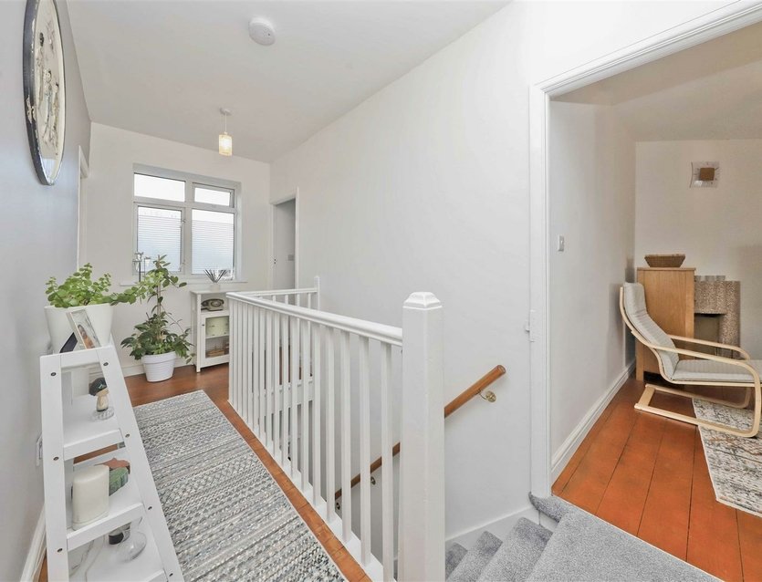 The accommodation briefly comprises a welcoming entrance hall with stairs rising to the first floor. The generous landing benefits from access to the loft, a front-aspect double-glazed window, and doors leading to all rooms.