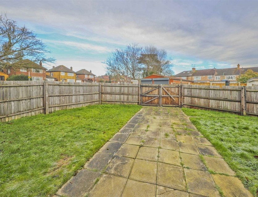 There is a private rear garden that is laid to lawn with timber storage sheds and gated access to the off street parking.