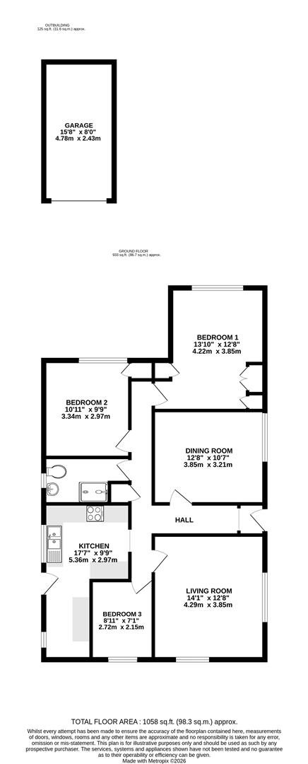 To the front a paved driveway provides off street parking and leads to the detached garage.