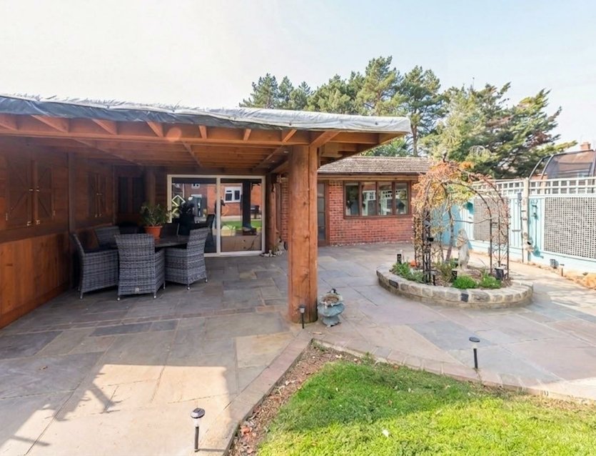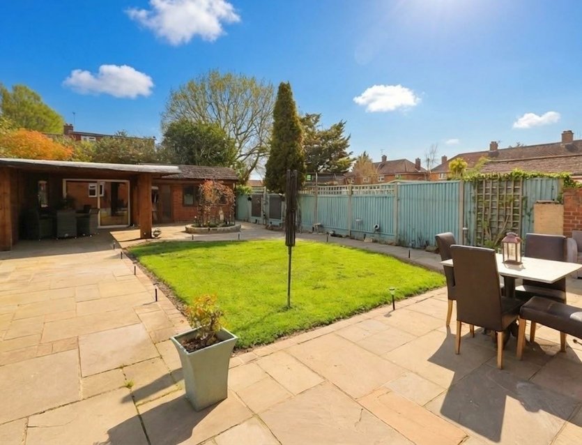 Outside, the property benefits from a particularly generous rear garden, laid to lawn with a paved terrace providing an ideal setting for outdoor dining and entertaining. The space is both private and versatile.