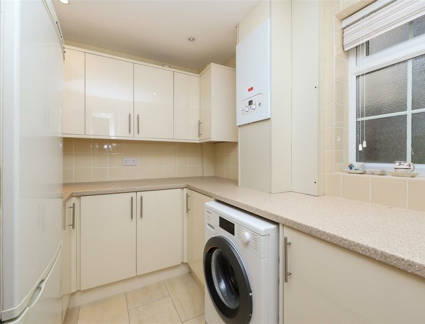 A separate utility room offers additional built-in storage and work surfaces, along with space for further appliances.