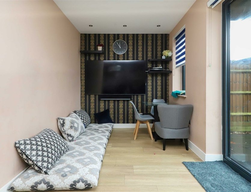 To the first floor the master bedroom has the benefit of an en-suite shower room with a shower cubicle, w.c. wash basin, chrome heated towel rail and tiled wall tiles. Bedroom two is a good size double bedroom and overlooks the rear garden, bedroom three is another double room that also overlooks the rear garden. The main bathroom has an enclosed bath with shower over, there is a w.c. and wash basin, chrome heated towel rail and tiled walls.