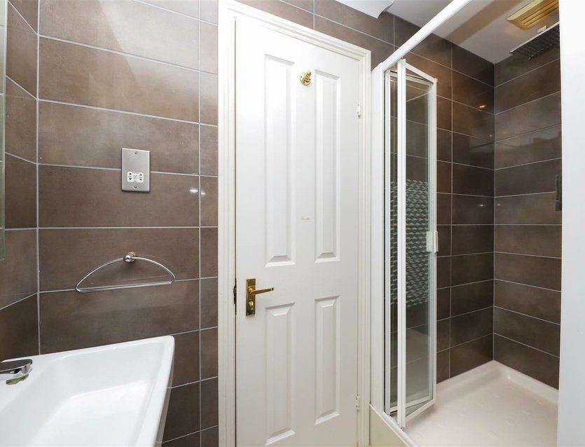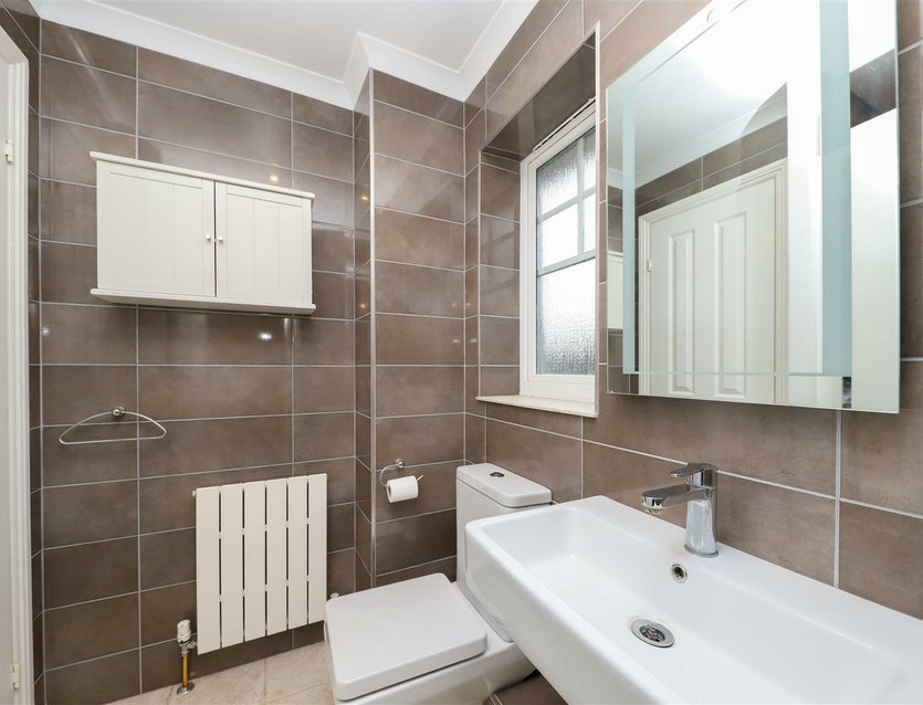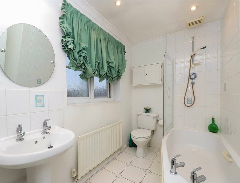 To the first floor, there are three double bedrooms, including a primary bedroom with a modern, fully tiled en-suite shower room. The family bathroom is fitted with an enclosed bath and shower over, wash basin, and WC.