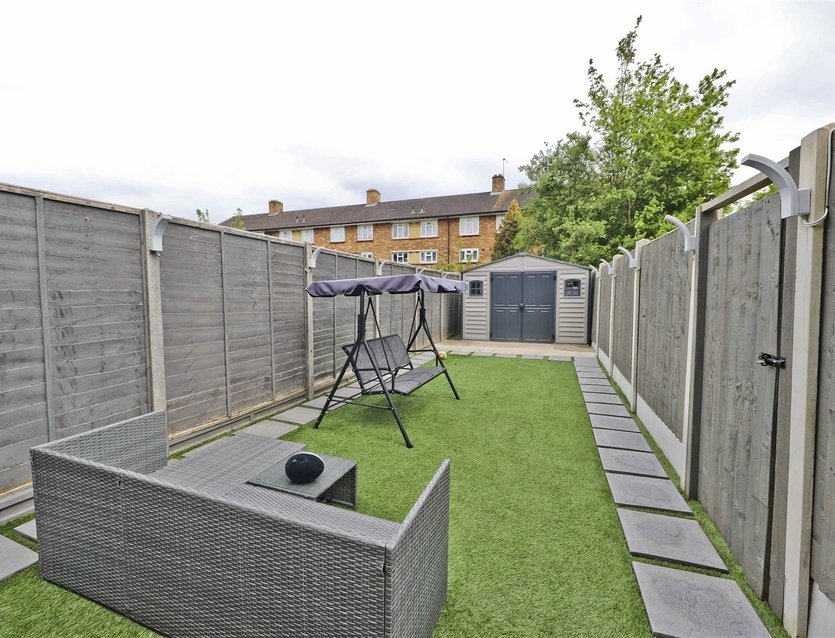 At the rear of the property is a lawn garden with patio details, screened by fencing for added privacy. At the end of the garden there is a seperate storage facility. The property comes with available parking options.