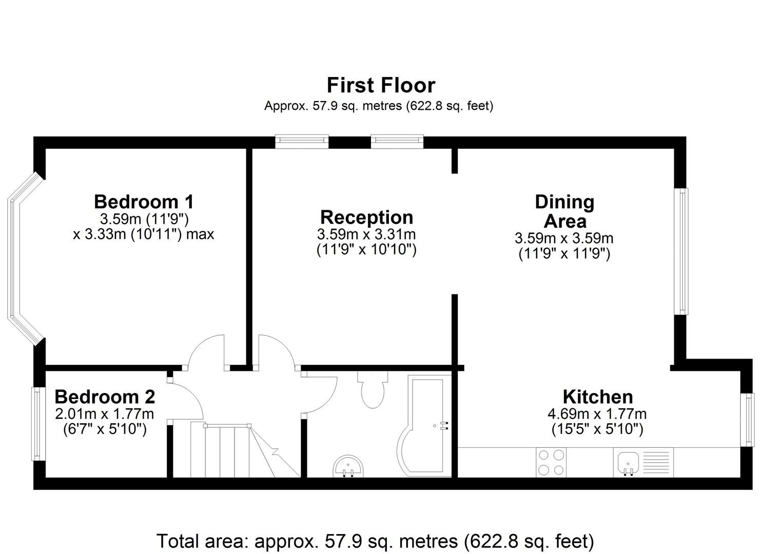 A well presented first floor two bedroom maisonette.