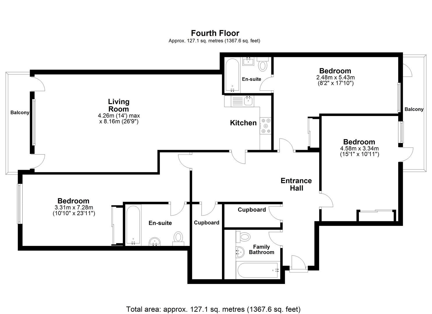 • Three double bedrooms